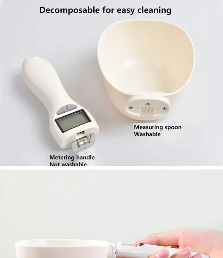 The measuring spoon detaches completely from the base unit in seconds, so you can pop it in the dishwasher or rinse it under the tap, no awkward scrubbing around electronic parts or worrying about water damage to the precision sensors.